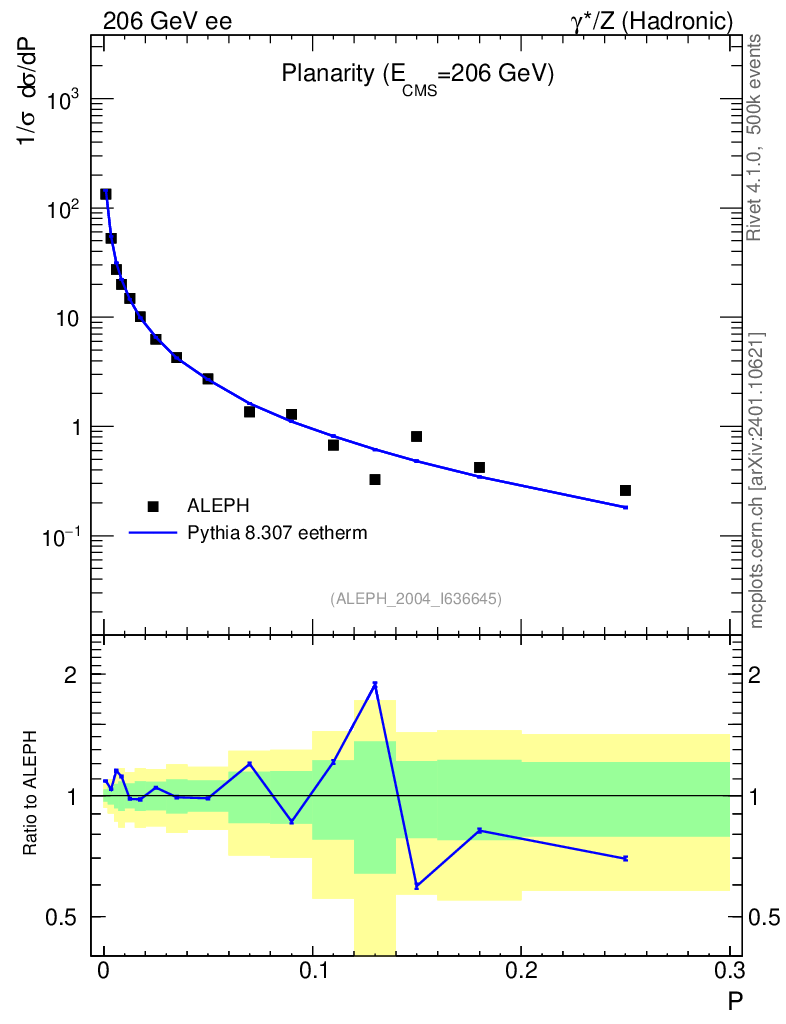 Lines: data, pythia8 8.307 eetherm |