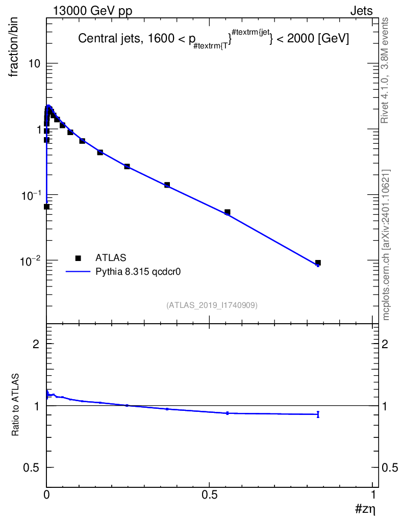 Lines: data, pythia8 8.315 qcdcr0 |
