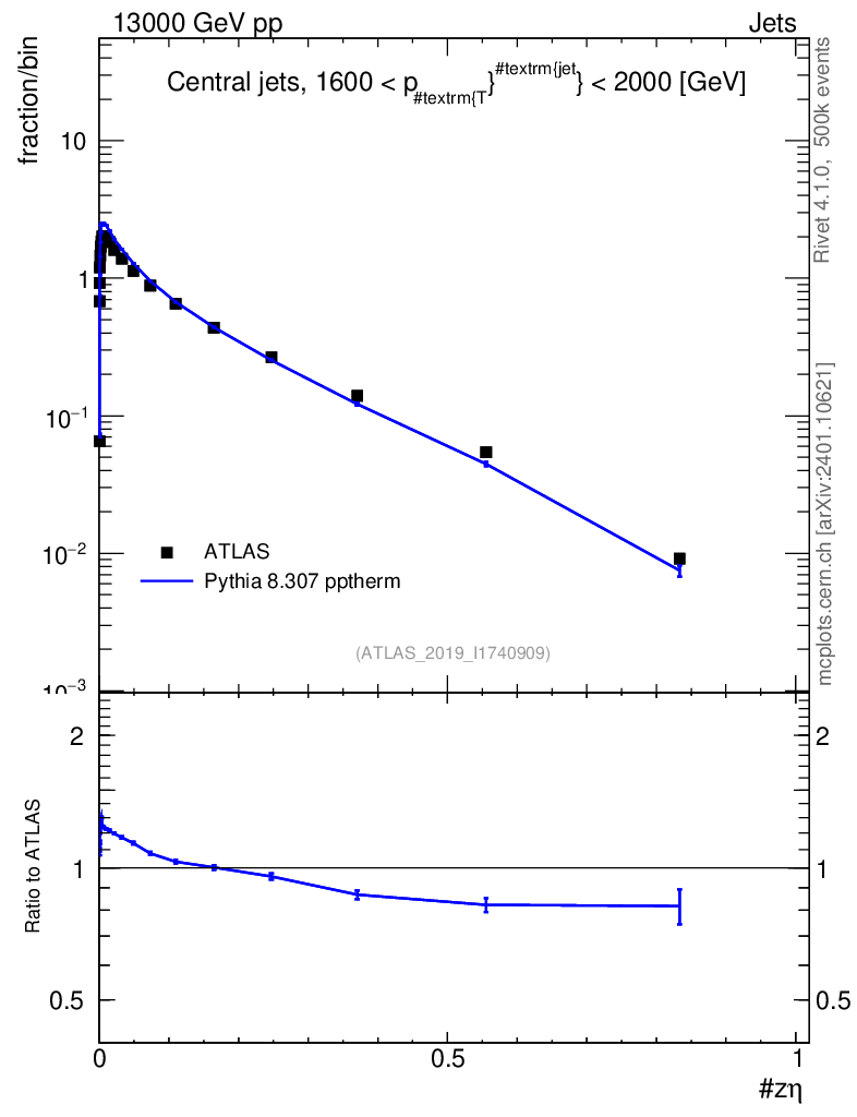 Lines: data, pythia8 8.307 pptherm |