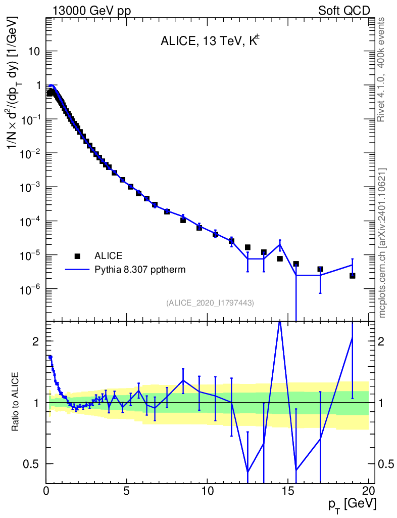 Lines: data, pythia8 8.307 pptherm |