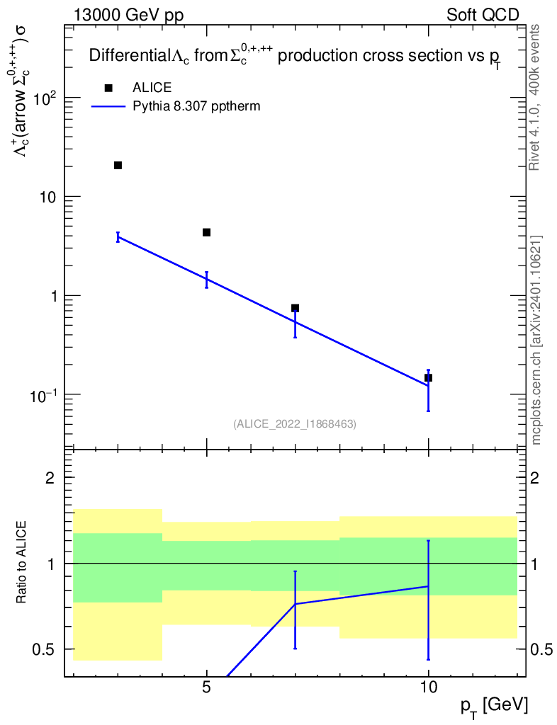 Lines: data, pythia8 8.307 pptherm |