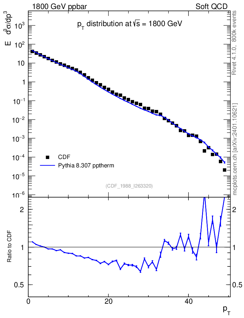 Lines: data, pythia8 8.307 pptherm |