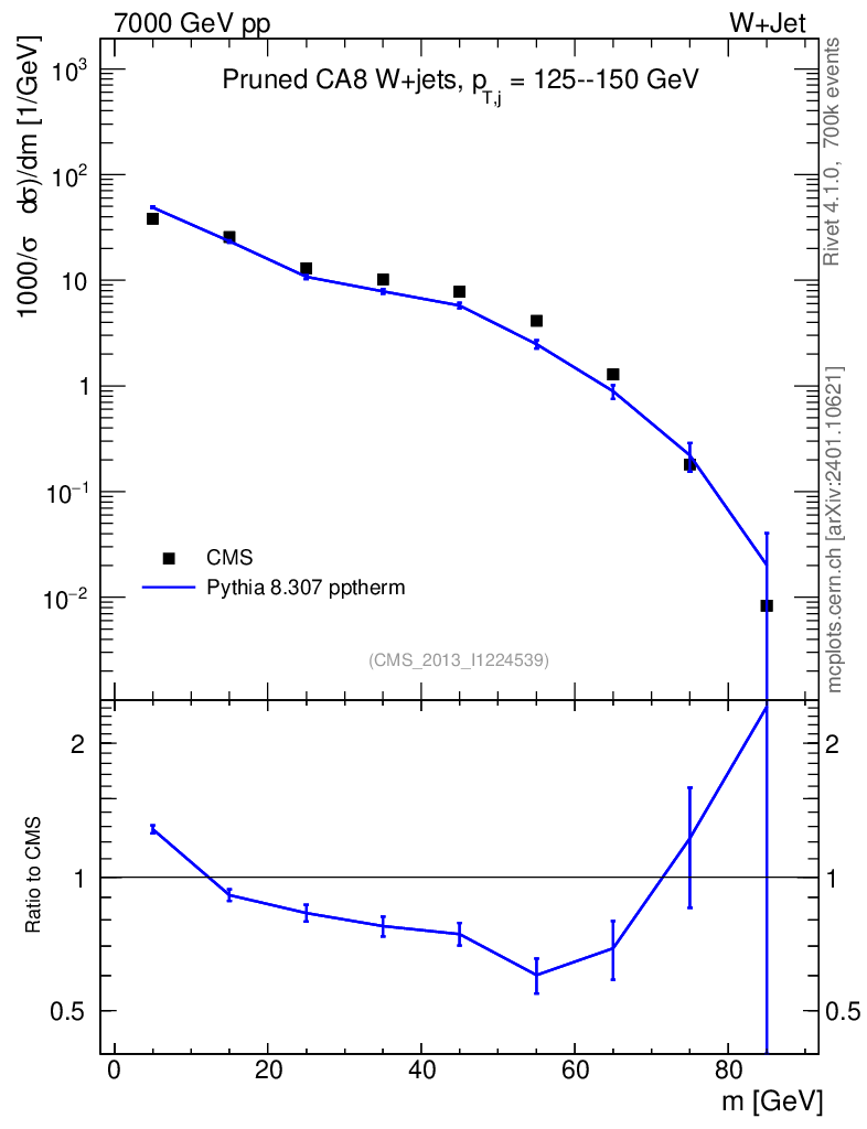 Lines: data, pythia8 8.307 pptherm |