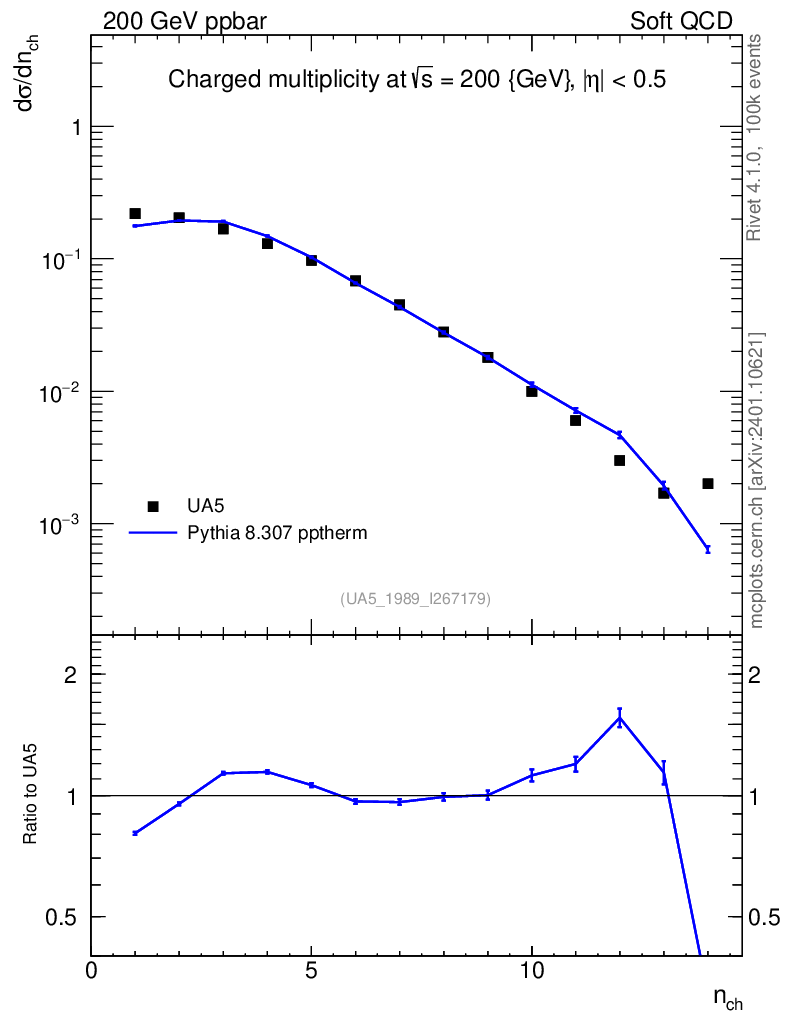 Lines: data, pythia8 8.307 pptherm |