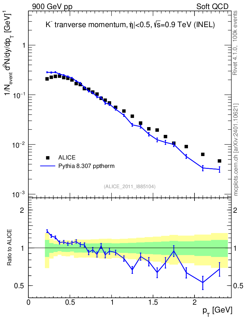Lines: data, pythia8 8.307 pptherm |