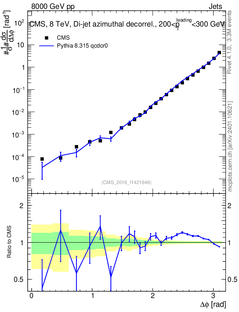 Lines: data, pythia8 8.315 qcdcr0 |