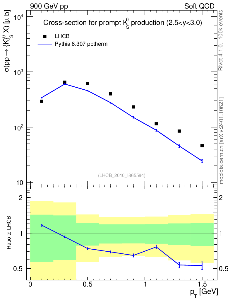 Lines: data, pythia8 8.307 pptherm |