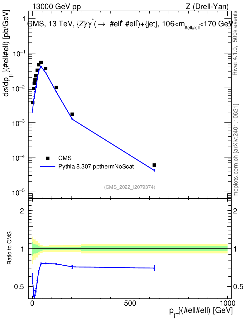 Lines: data, pythia8 8.307 ppthermNoScat |