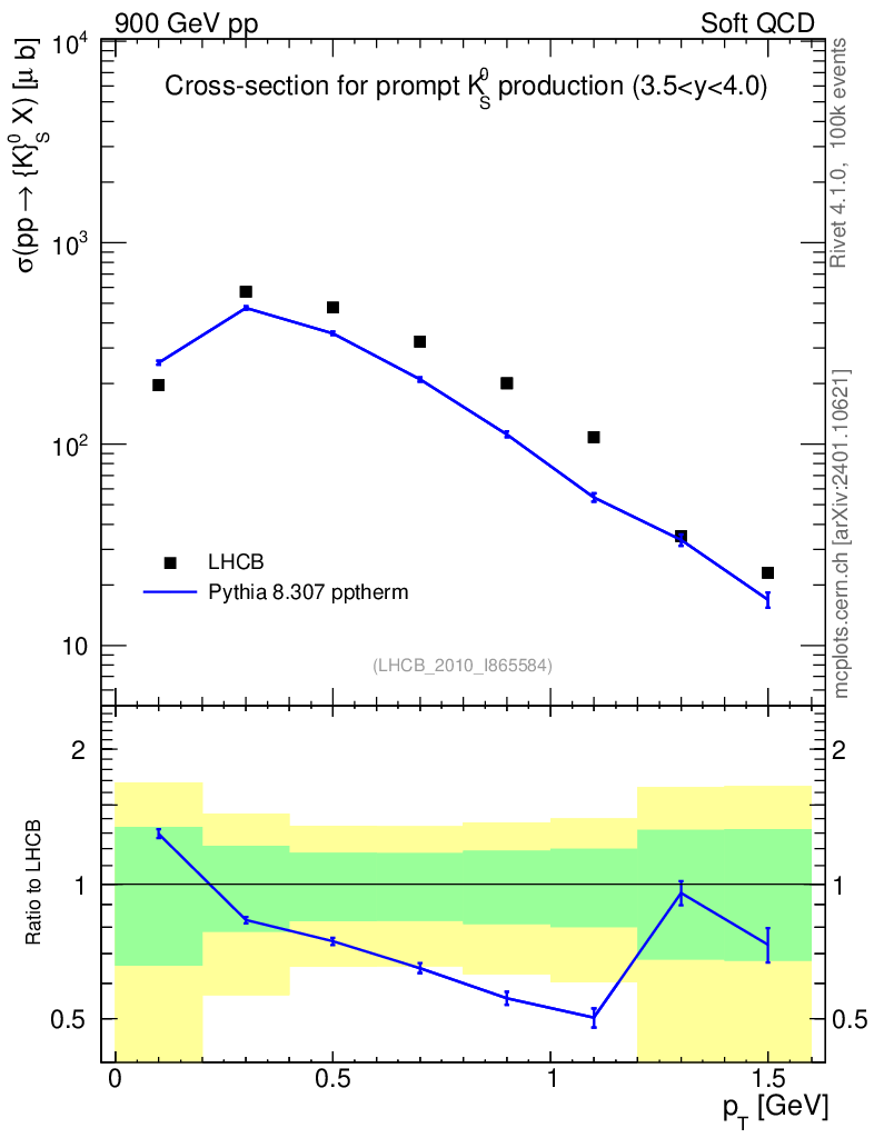 Lines: data, pythia8 8.307 pptherm |