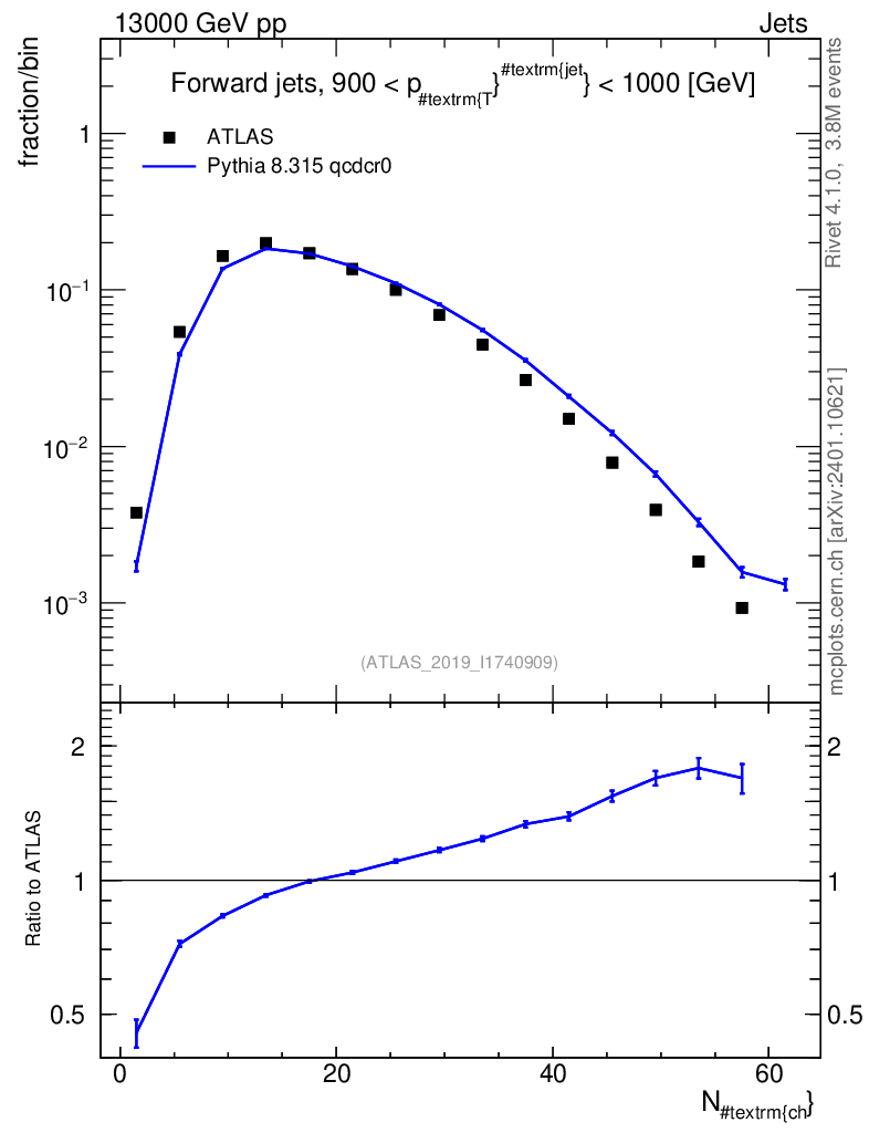 Lines: data, pythia8 8.315 qcdcr0 |