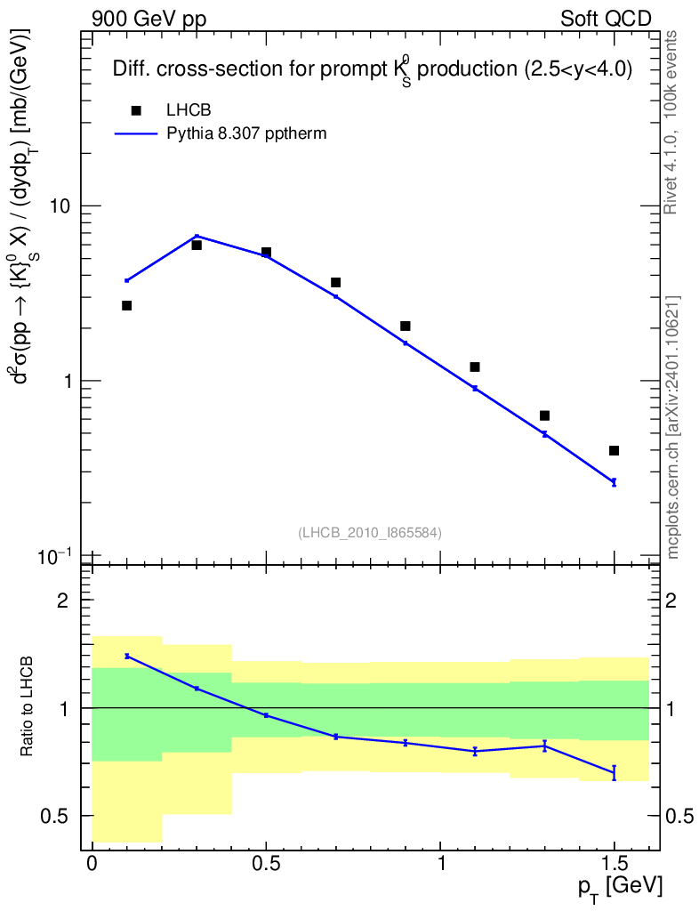 Lines: data, pythia8 8.307 pptherm |