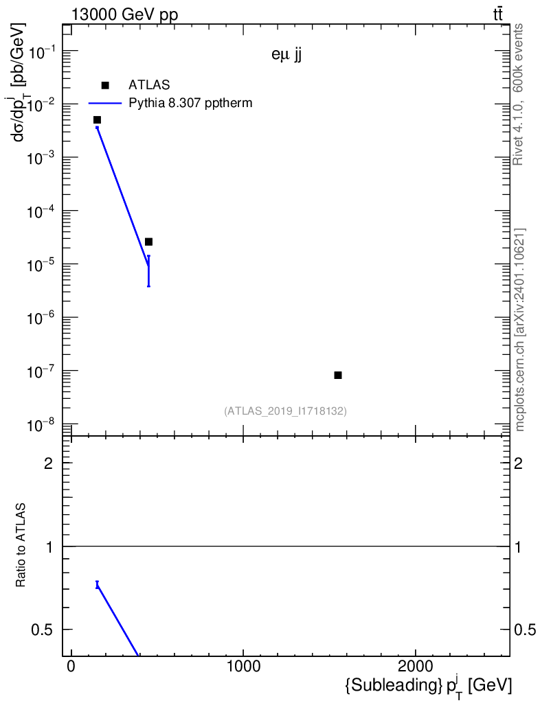 Lines: data, pythia8 8.307 pptherm |