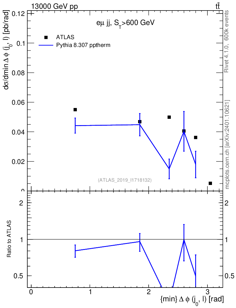 Lines: data, pythia8 8.307 pptherm |