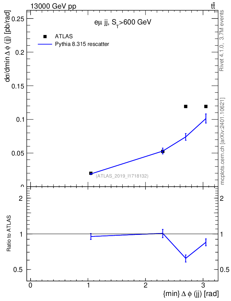 Lines: data, pythia8 8.315 rescatter |