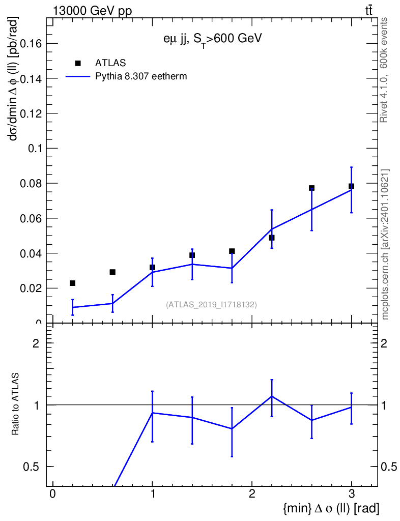 Lines: data, pythia8 8.307 eetherm |