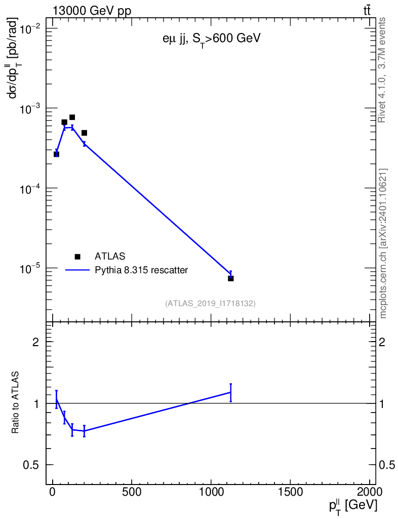 Lines: data, pythia8 8.315 rescatter |