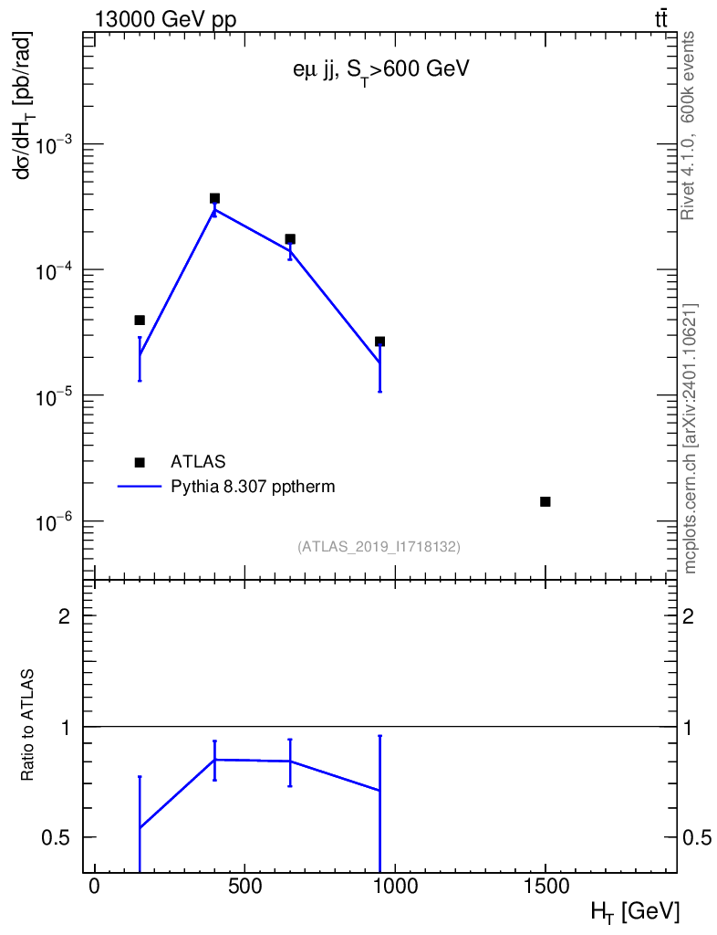 Lines: data, pythia8 8.307 pptherm |