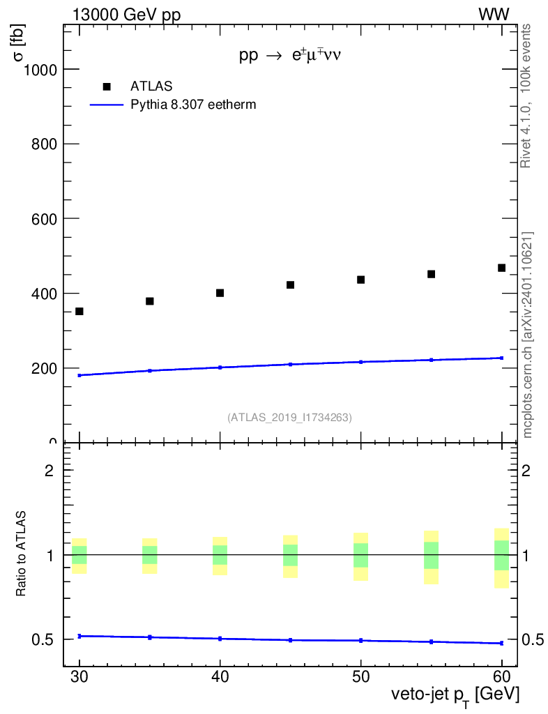 Lines: data, pythia8 8.307 eetherm |
