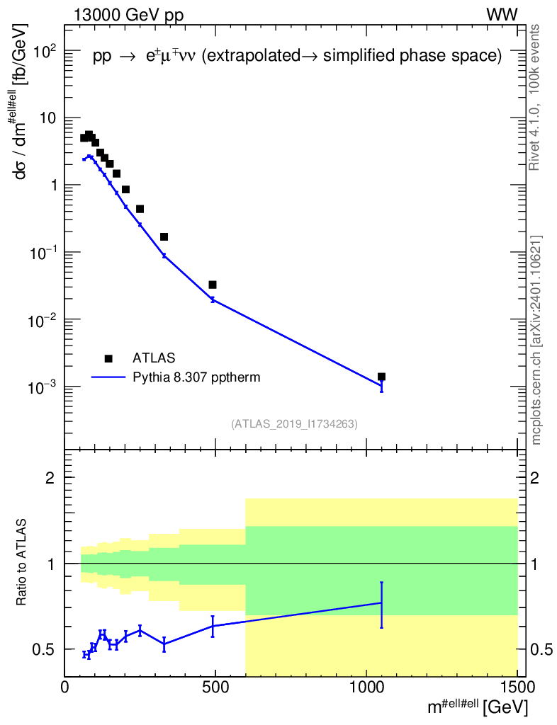 Lines: data, pythia8 8.307 pptherm |