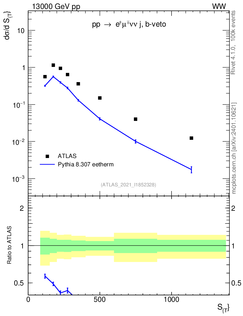 Lines: data, pythia8 8.307 eetherm | compare with other tunes