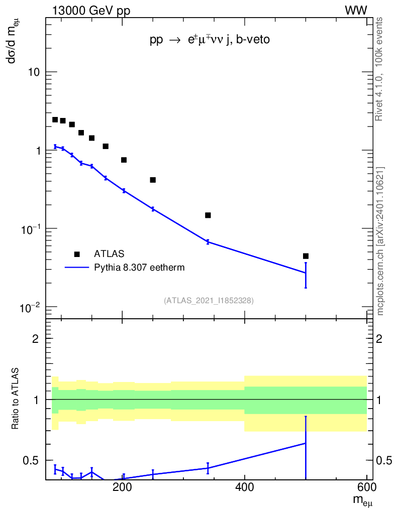 Lines: data, pythia8 8.307 eetherm |