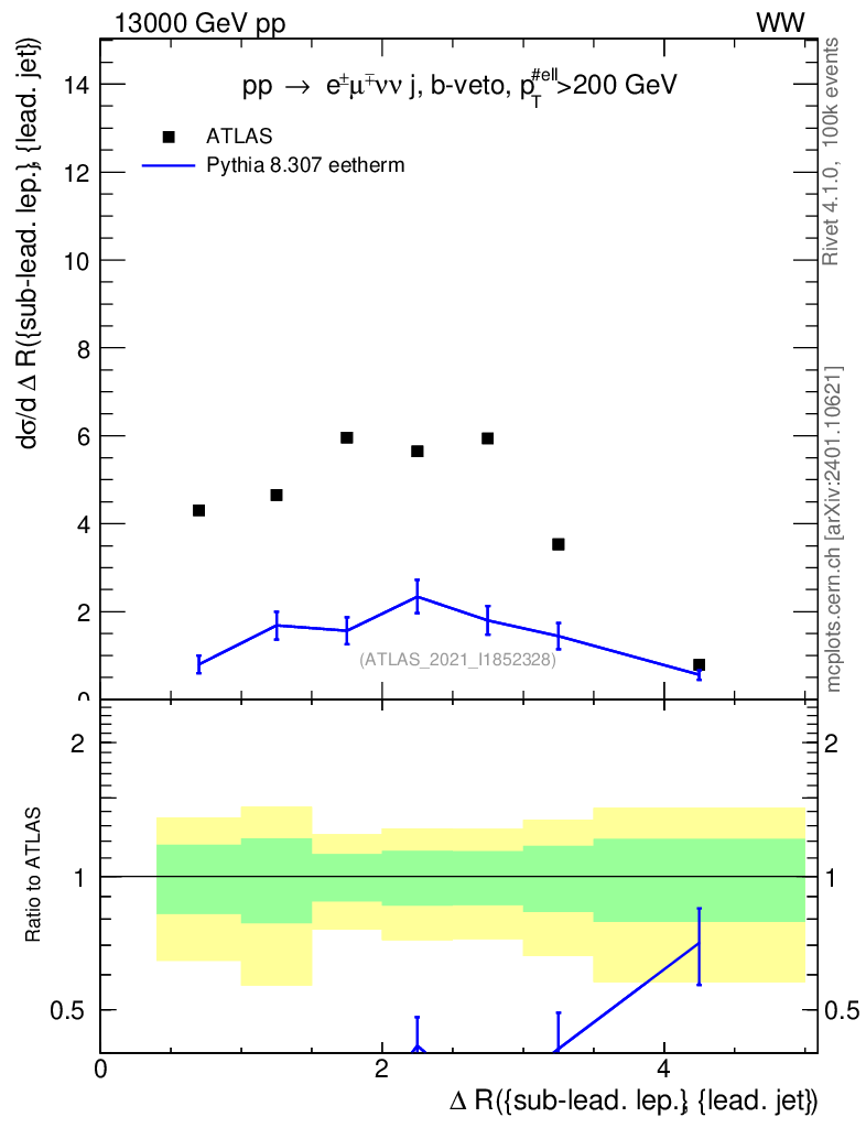 Lines: data, pythia8 8.307 eetherm |