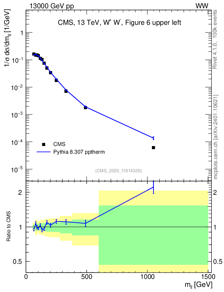 Lines: data, pythia8 8.307 pptherm |