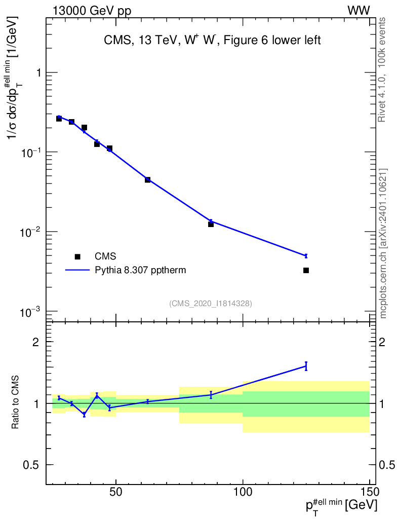Lines: data, pythia8 8.307 pptherm |