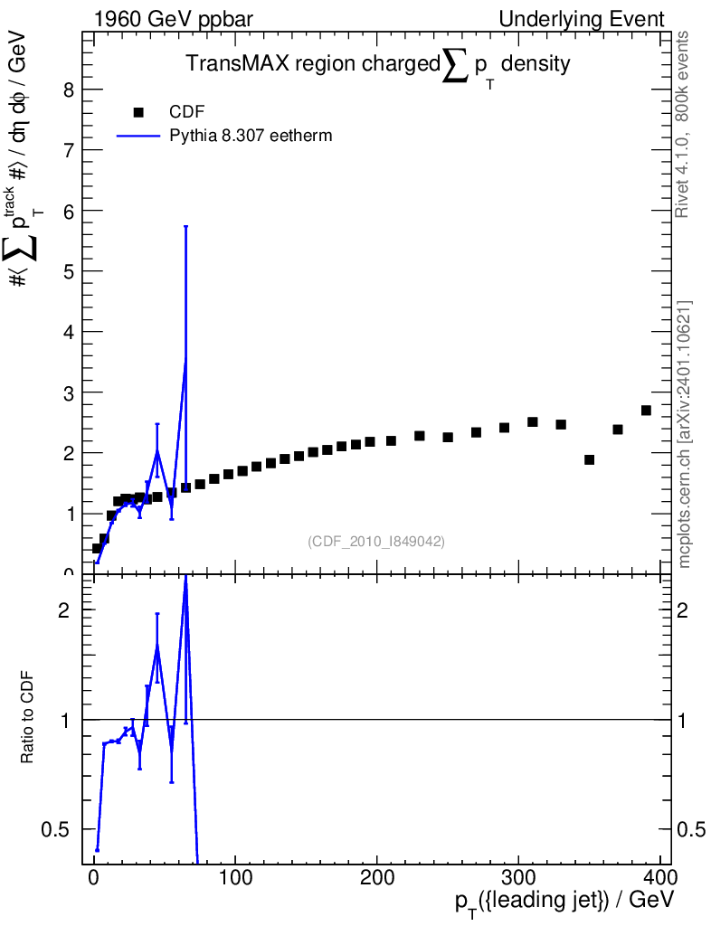 Lines: data, pythia8 8.307 eetherm |