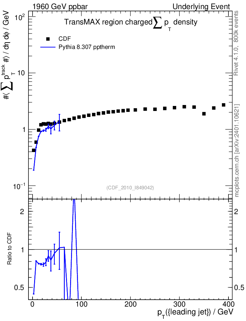 Lines: data, pythia8 8.307 pptherm |