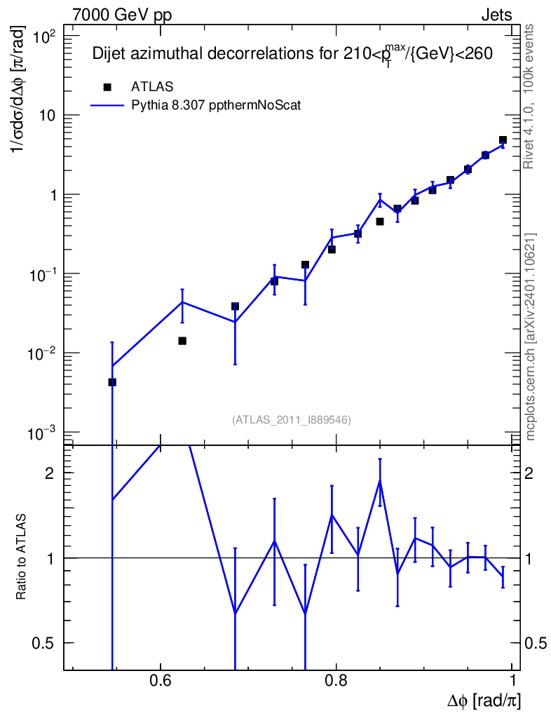 Lines: data, pythia8 8.307 ppthermNoScat |