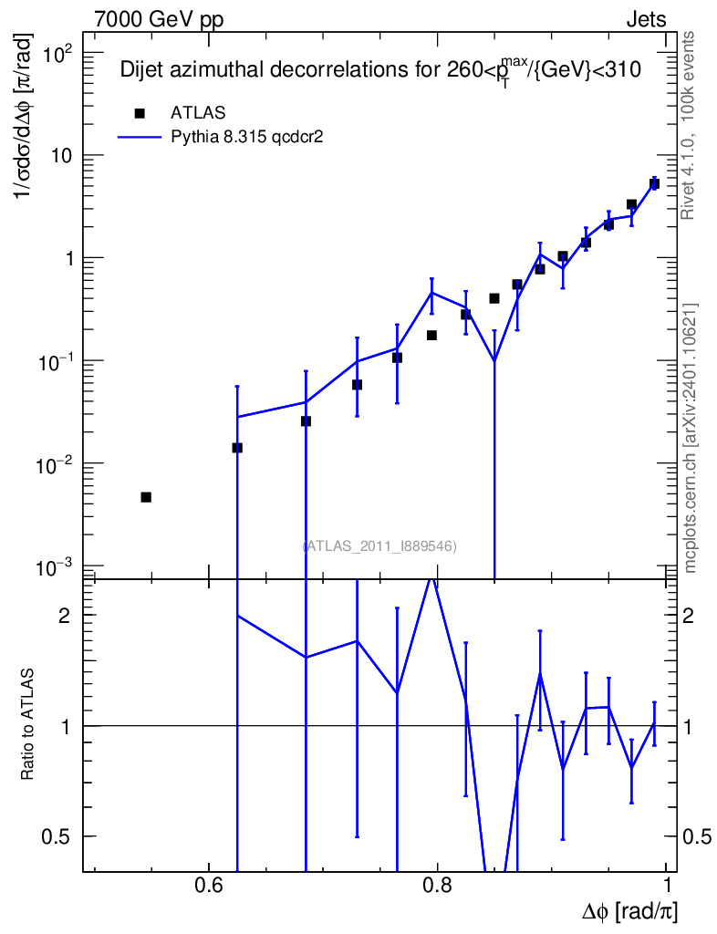 Lines: data, pythia8 8.315 qcdcr2 |