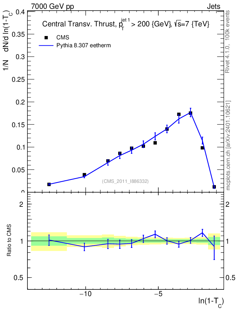 Lines: data, pythia8 8.307 eetherm |
