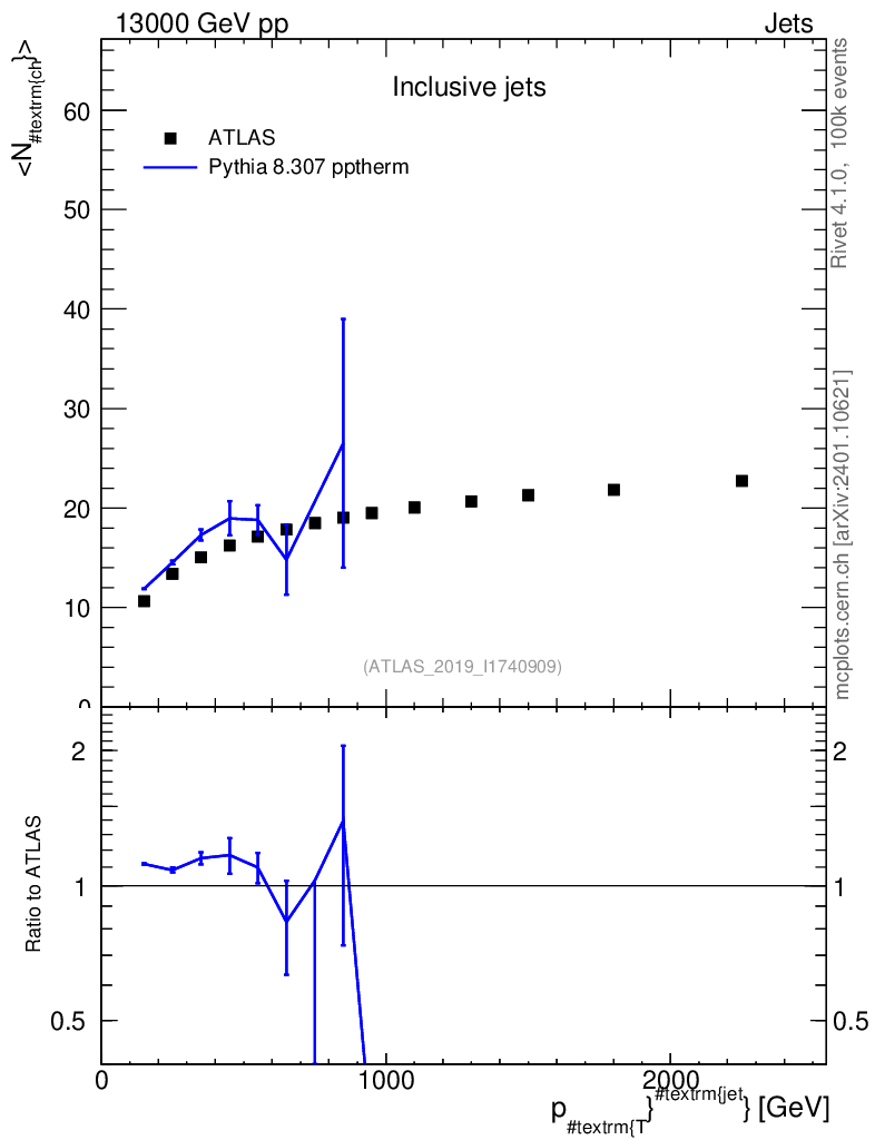 Lines: data, pythia8 8.307 pptherm |