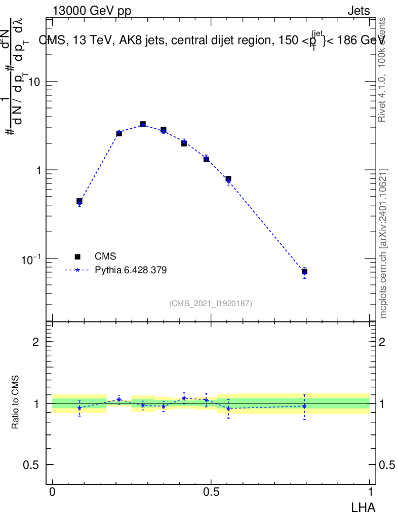 Lines: data, pythia6 6.428 379 |