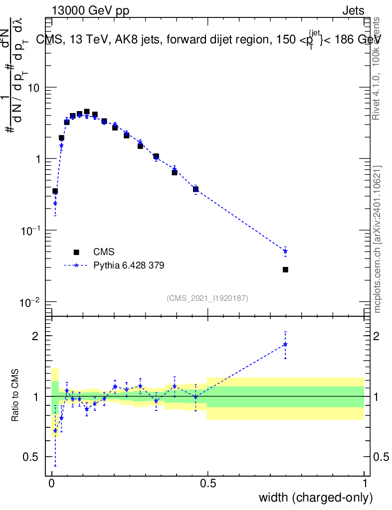 Lines: data, pythia6 6.428 379 |