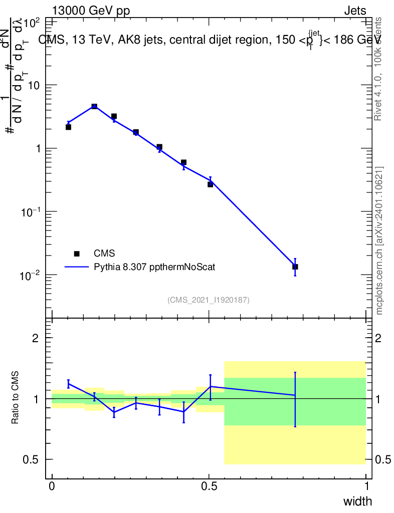 Lines: data, pythia8 8.307 ppthermNoScat |