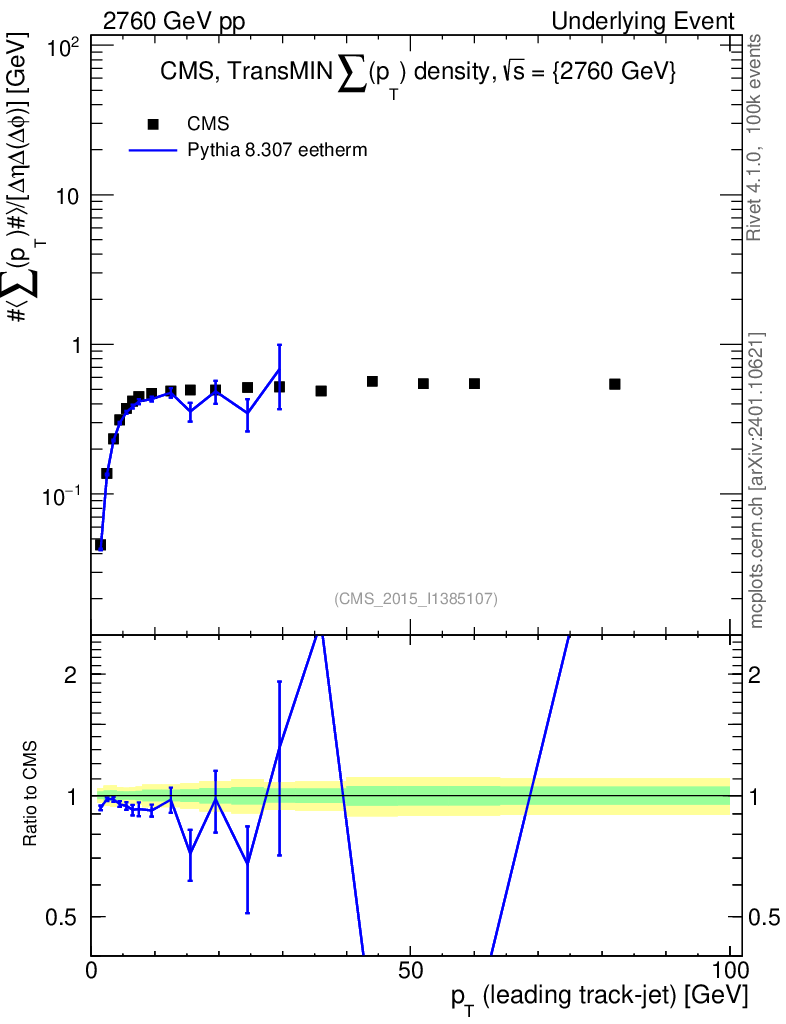 Lines: data, pythia8 8.307 eetherm |