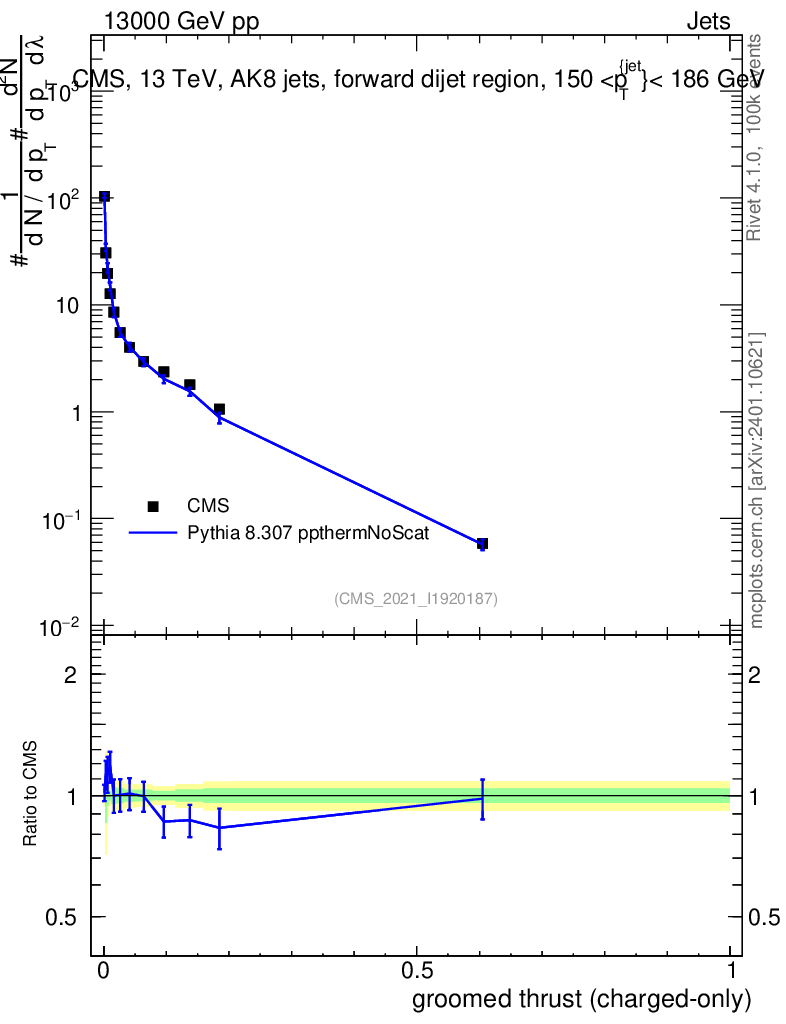 Lines: data, pythia8 8.307 ppthermNoScat |