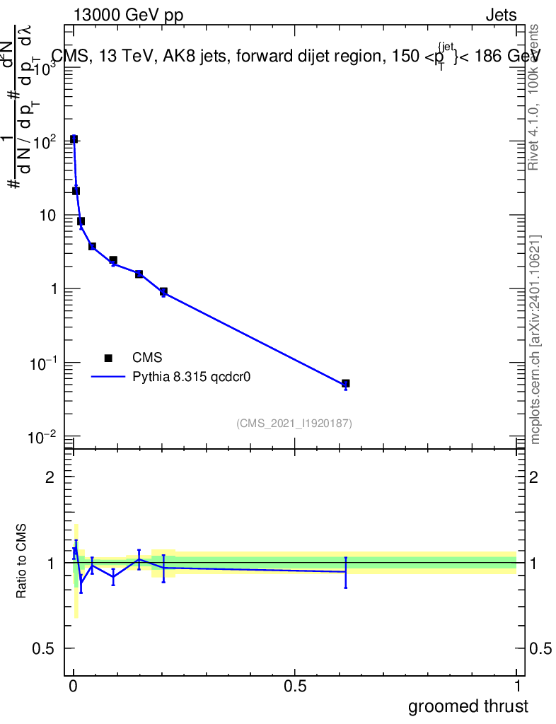 Lines: data, pythia8 8.315 qcdcr0 |