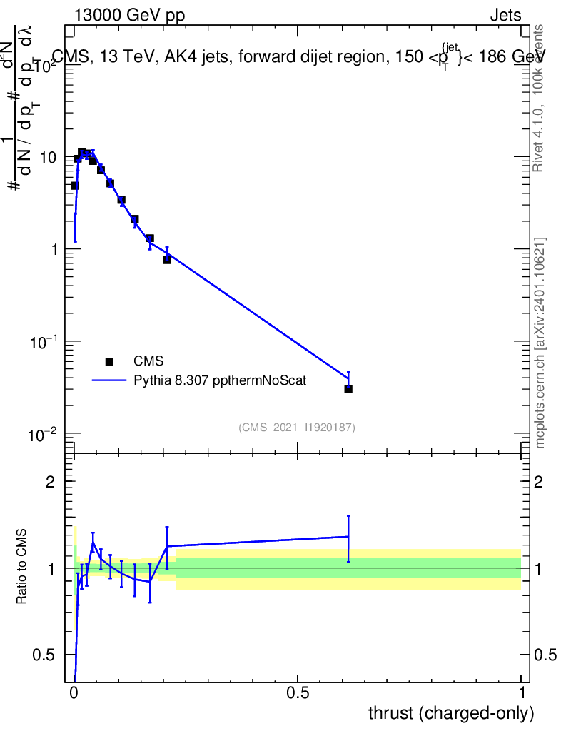 Lines: data, pythia8 8.307 ppthermNoScat |