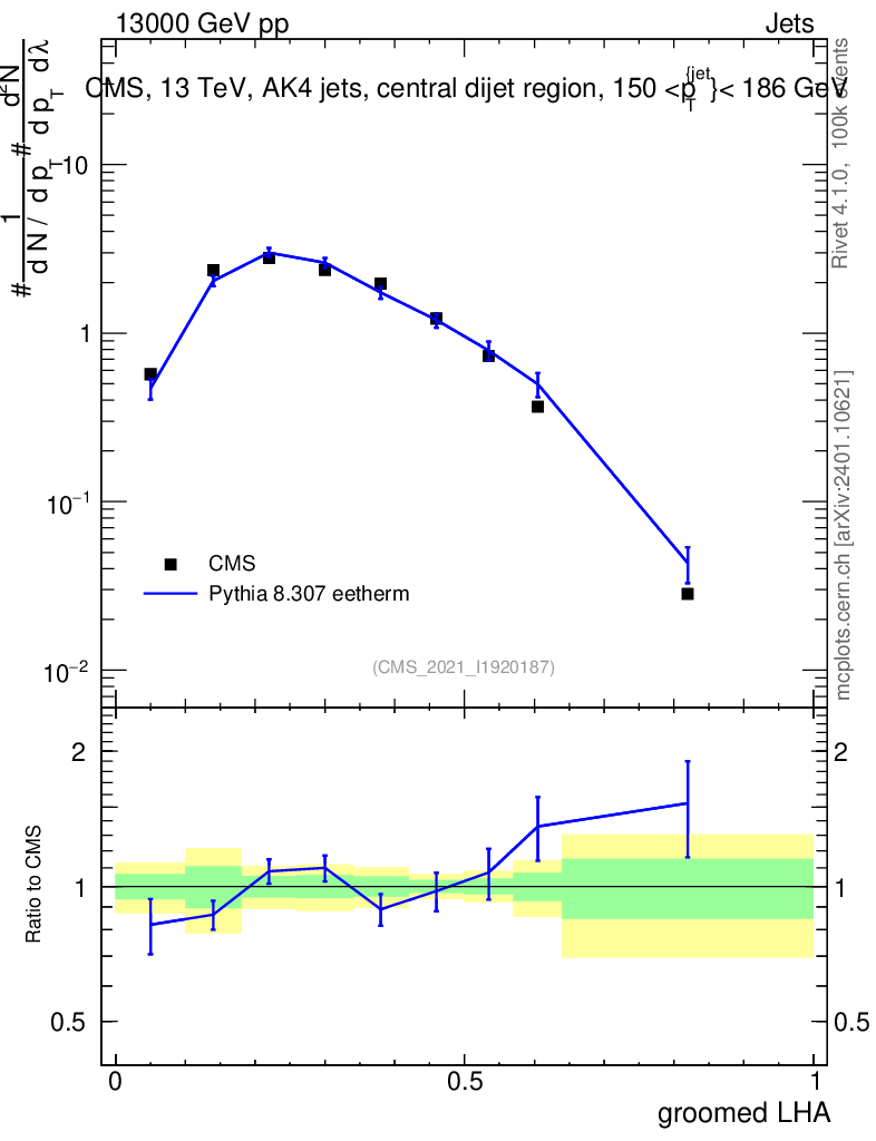 Lines: data, pythia8 8.307 eetherm |