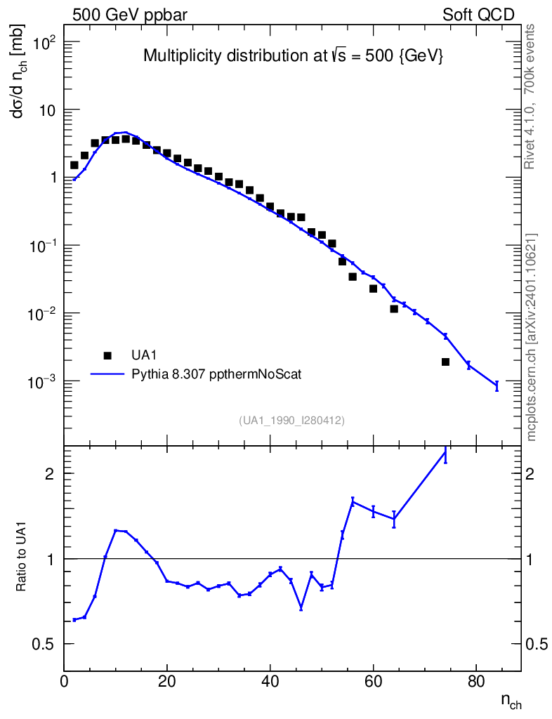 Lines: data, pythia8 8.307 ppthermNoScat |