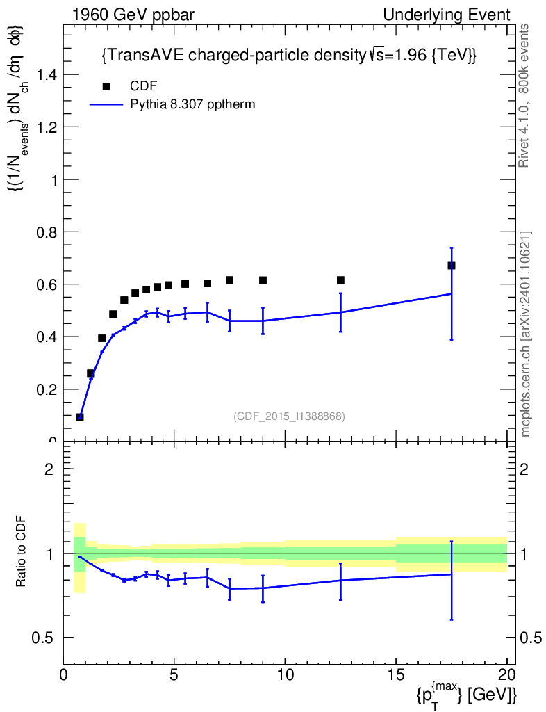 Lines: data, pythia8 8.307 pptherm |
