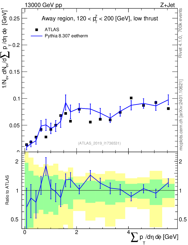 Lines: data, pythia8 8.307 eetherm |