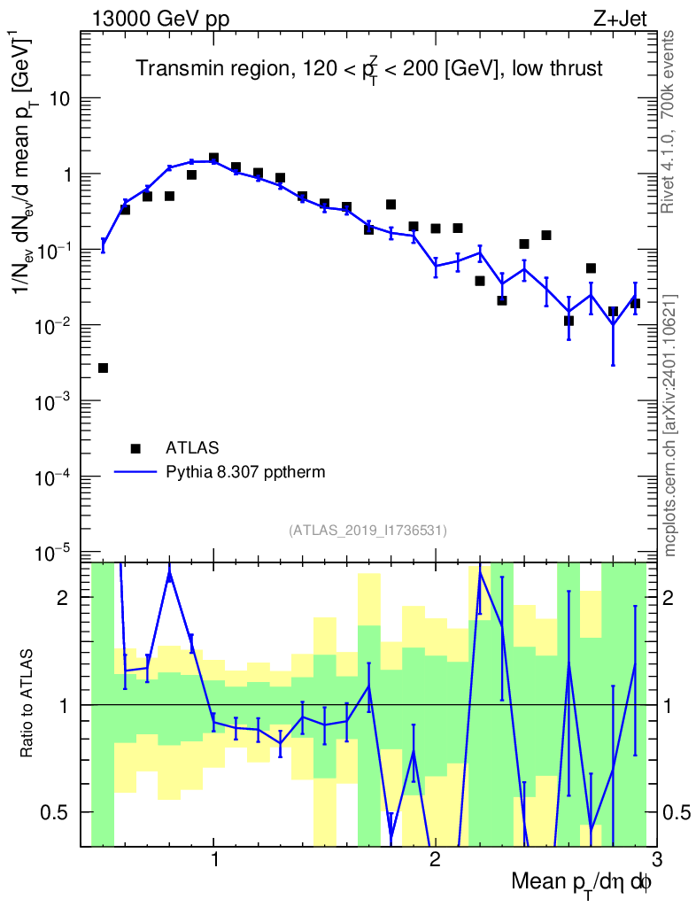 Lines: data, pythia8 8.307 pptherm |