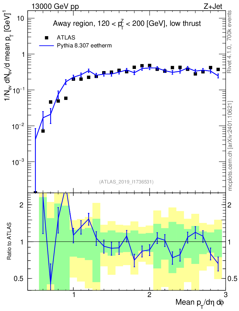 Lines: data, pythia8 8.307 eetherm | compare with other tunes