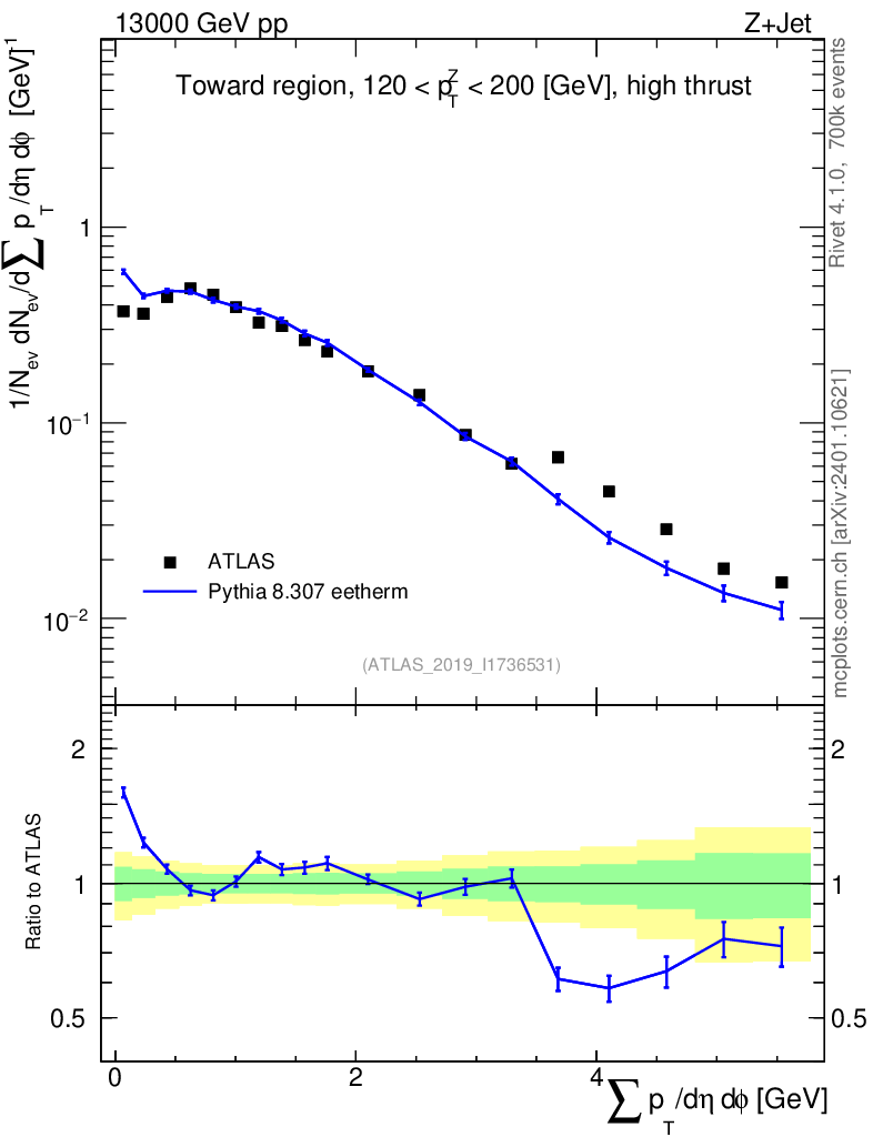 Lines: data, pythia8 8.307 eetherm |