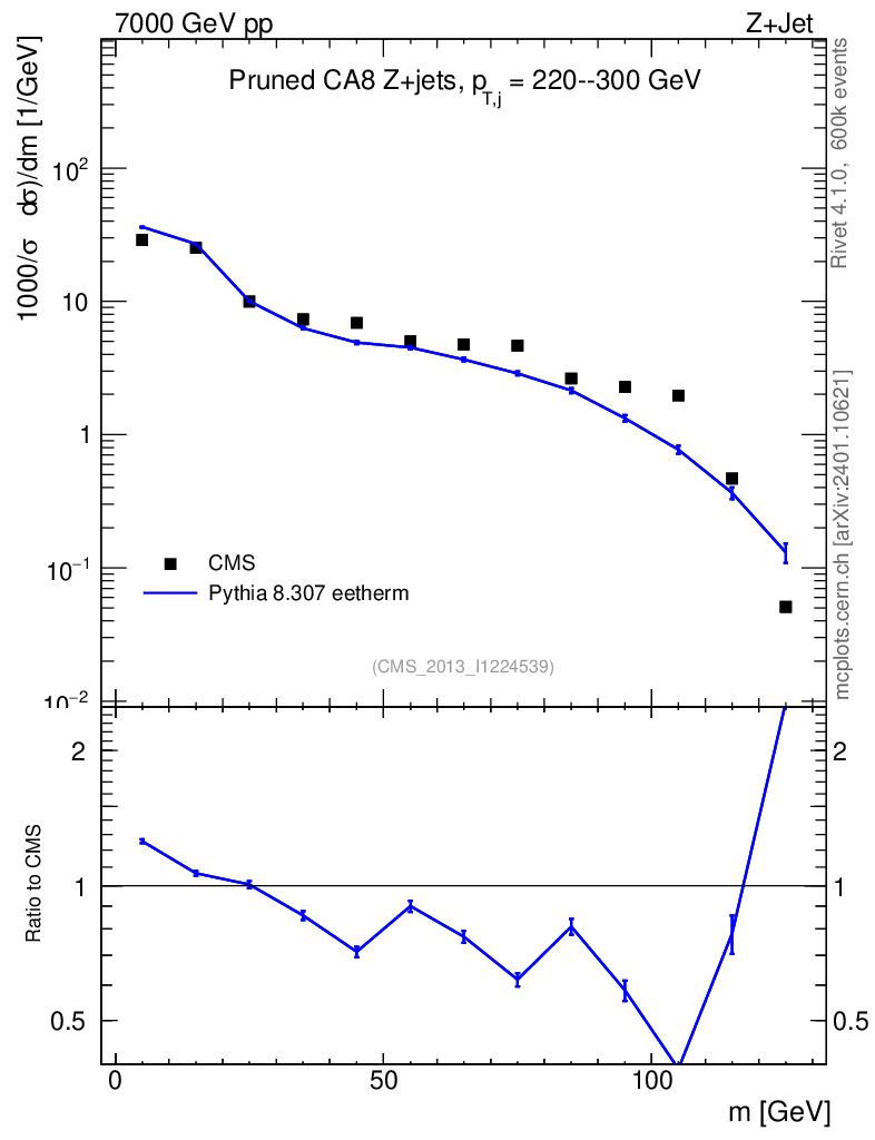 Lines: data, pythia8 8.307 eetherm |
