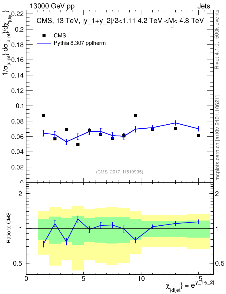 Lines: data, pythia8 8.307 pptherm |